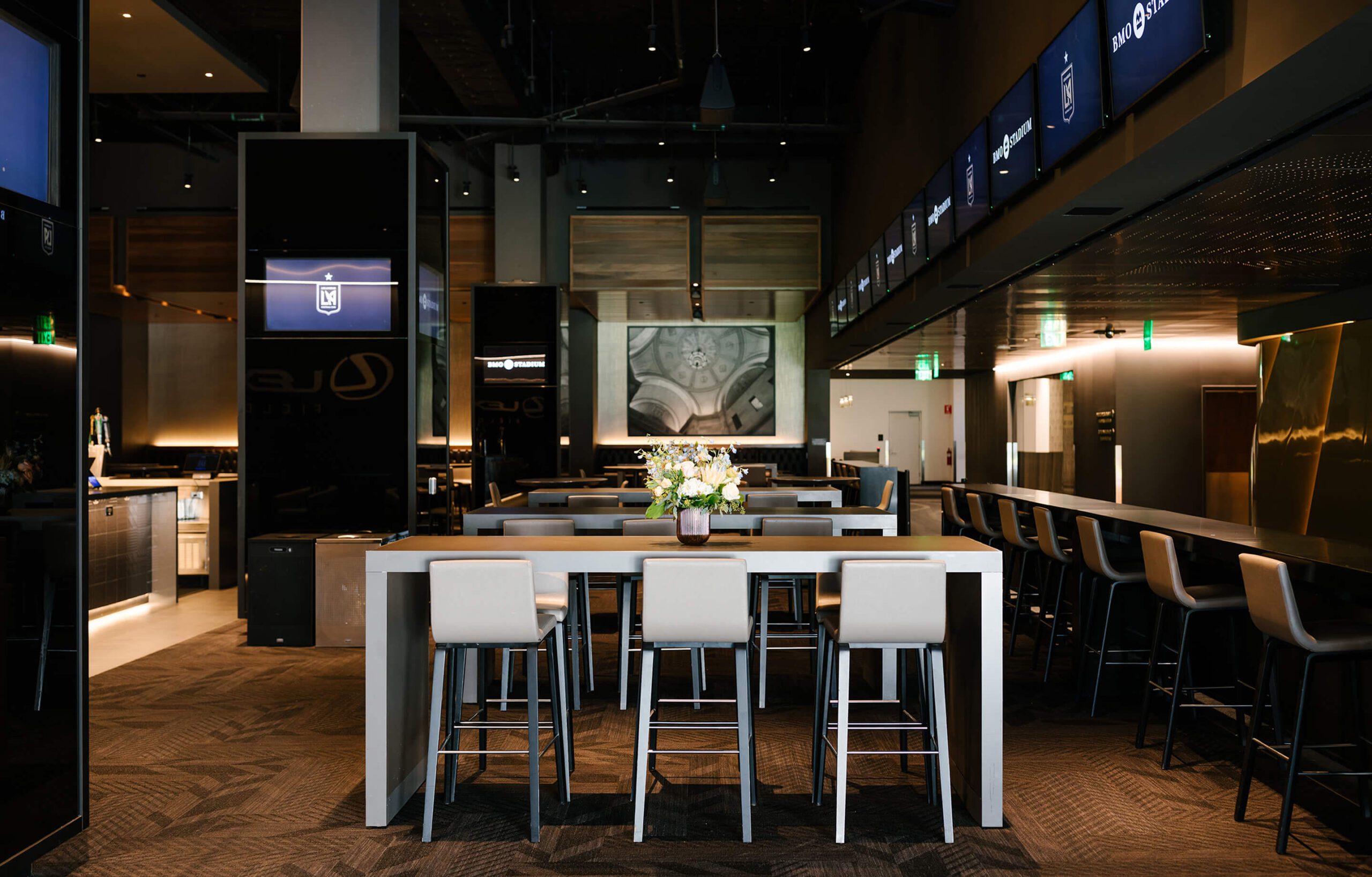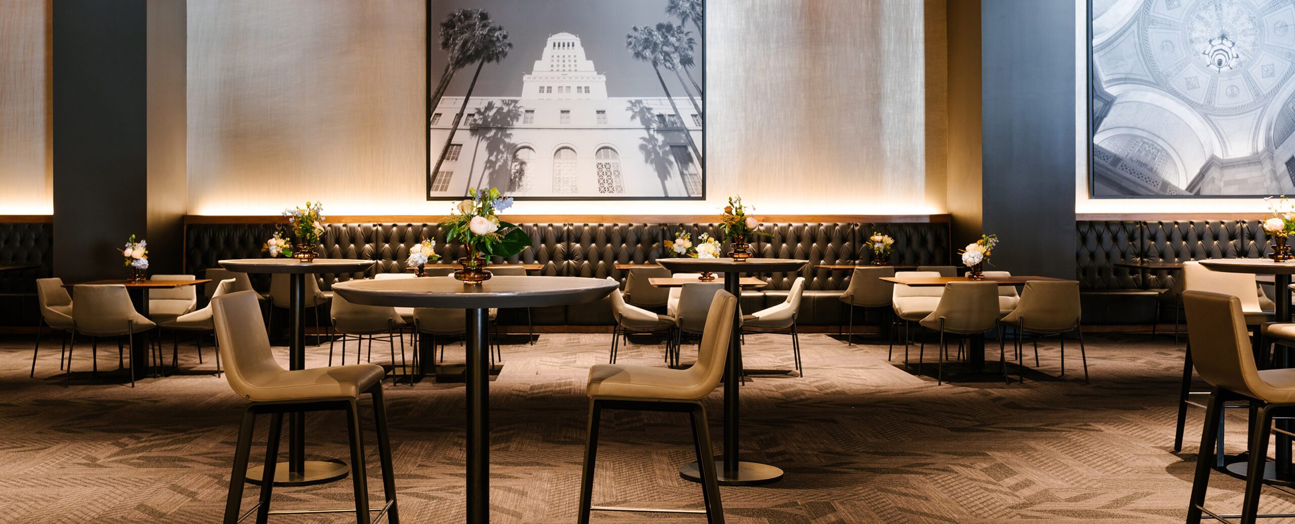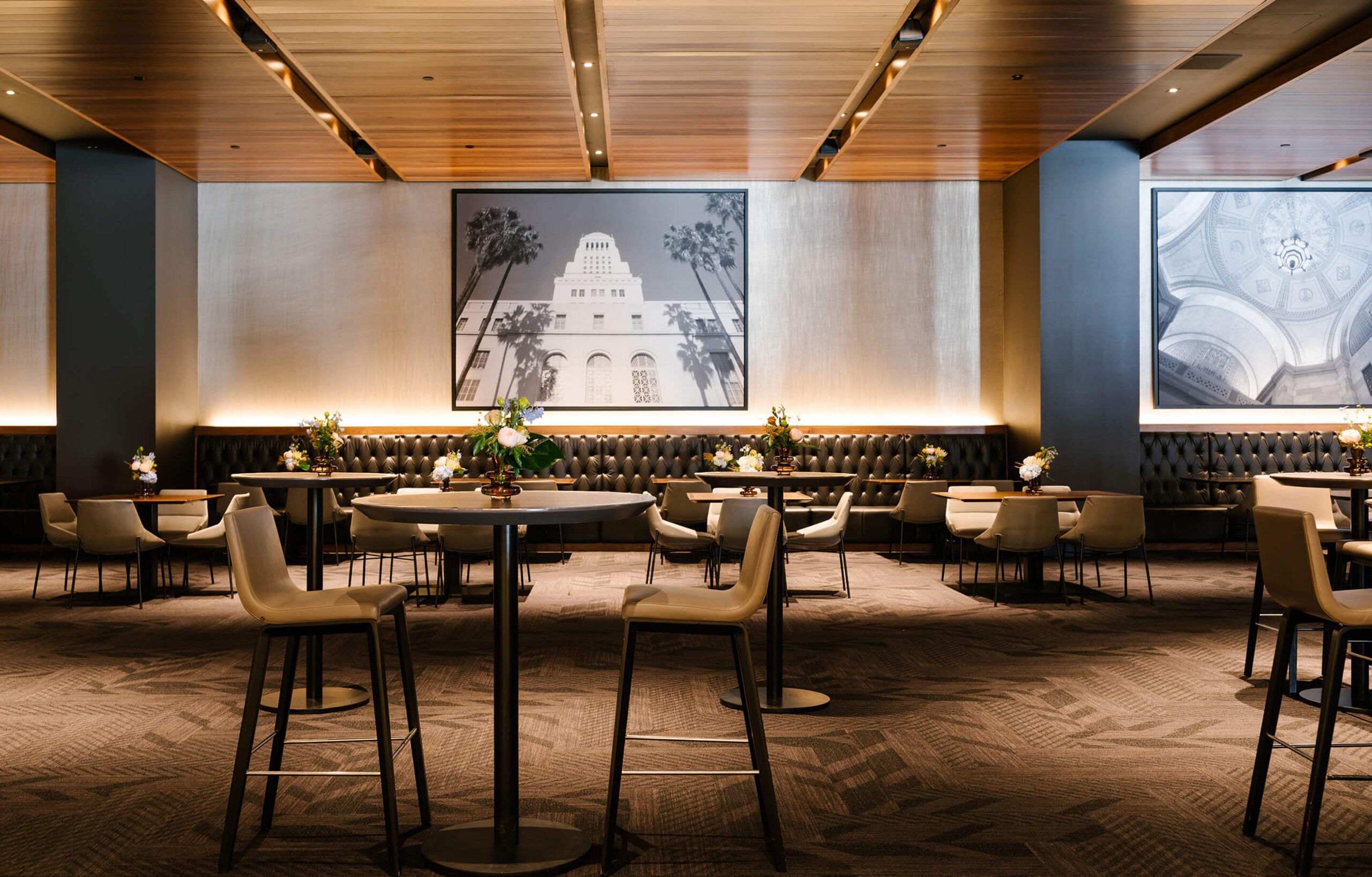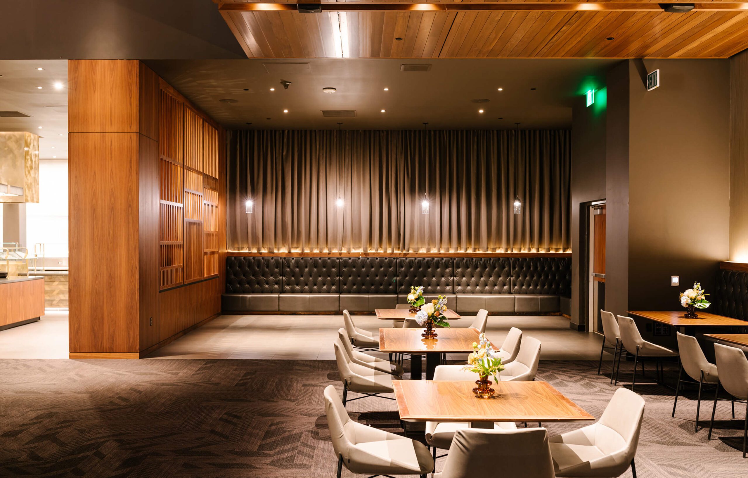Intimate and private, the Field Club offers a sophisticated setting for any event. Designed with an Old Hollywood-inspired aesthetic, the club features a rich, dark ambiance that exudes timeless elegance.