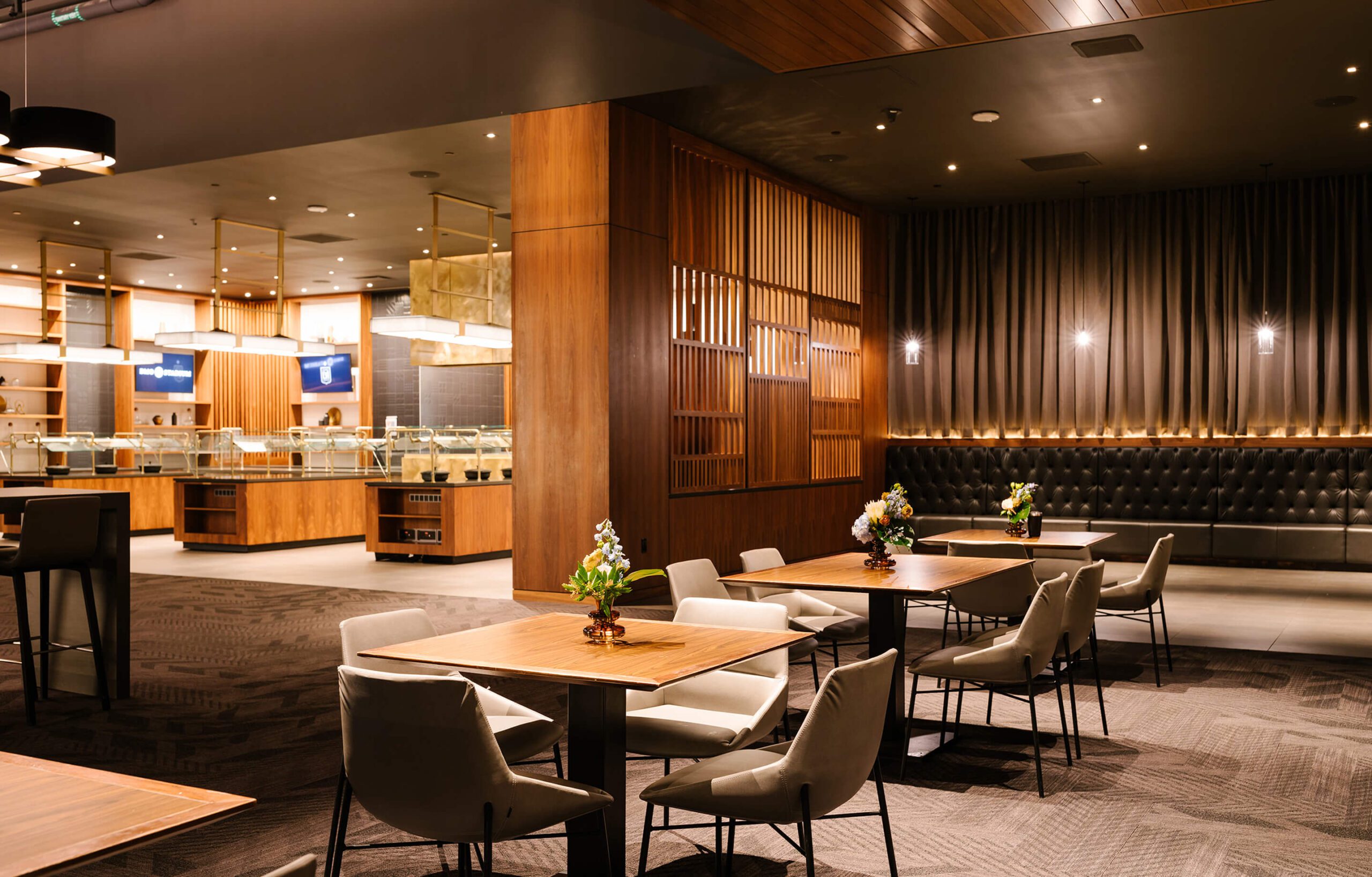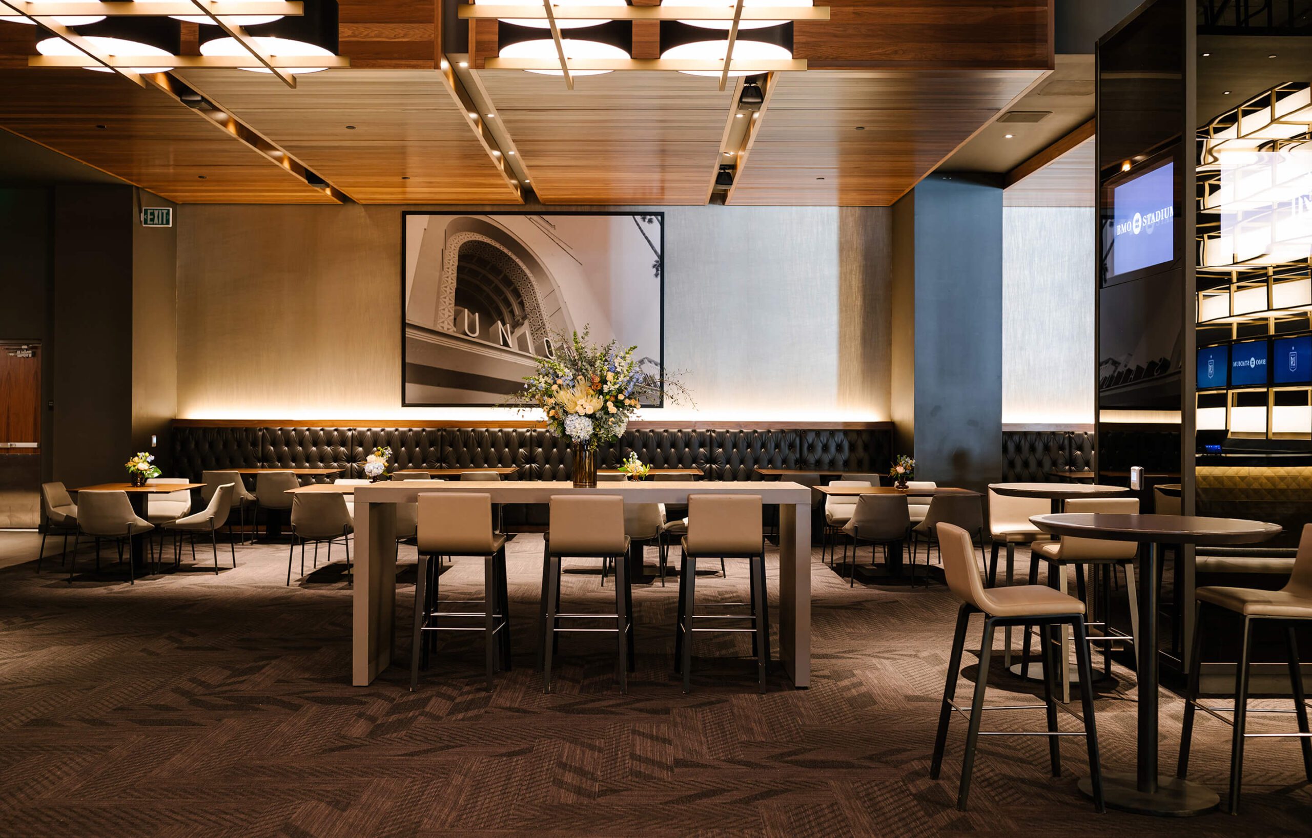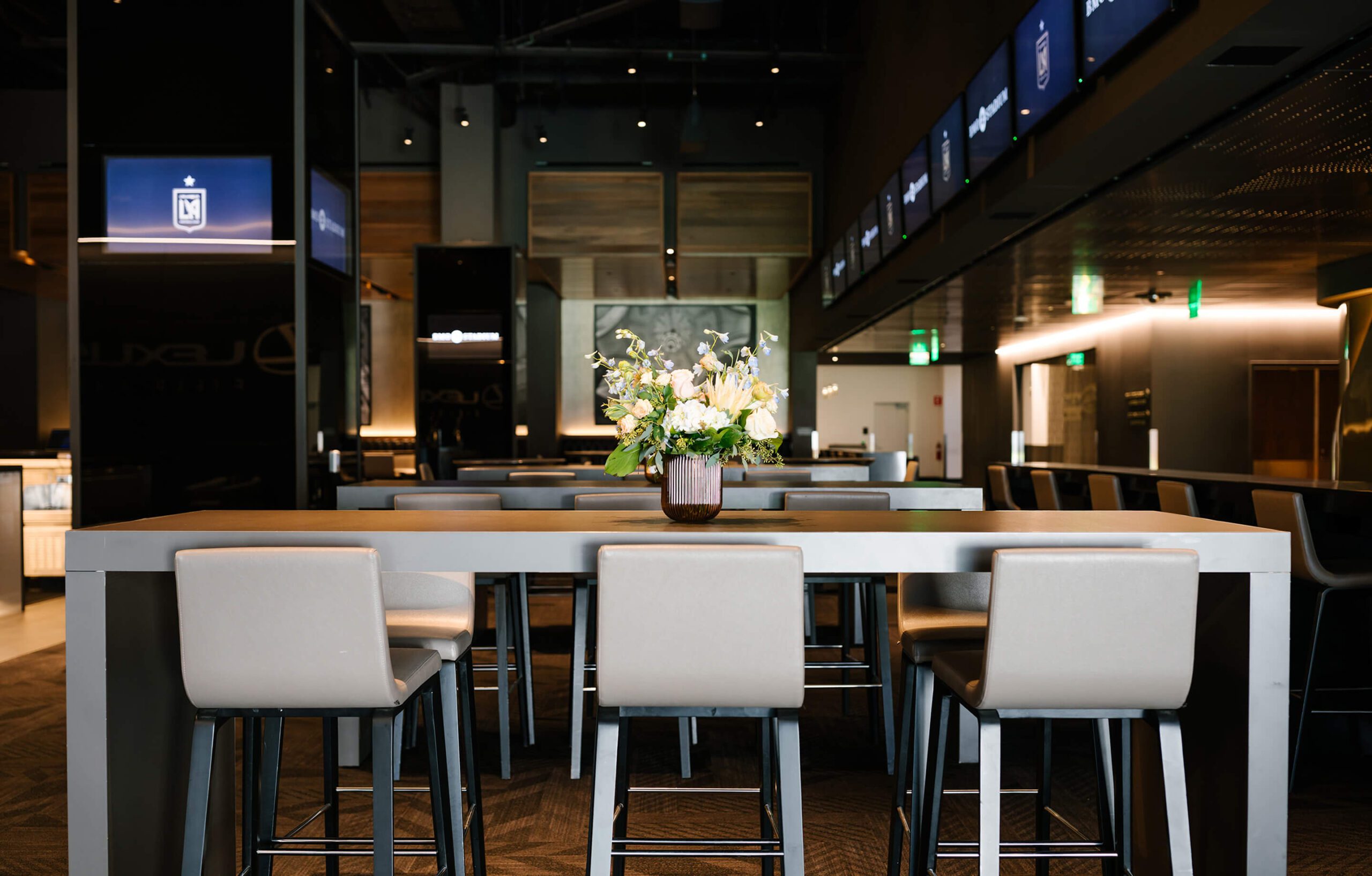 Intimate and private, the Field Club offers a sophisticated setting for any event. Designed with an Old Hollywood-inspired aesthetic, the club features a rich, dark ambiance that exudes timeless elegance.