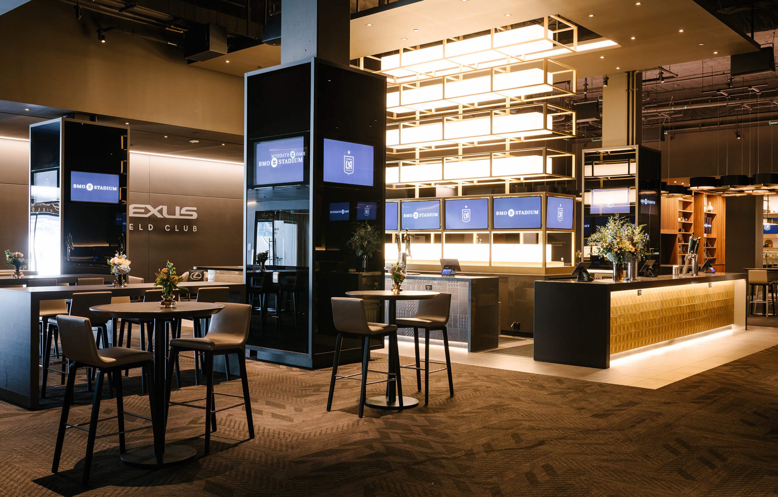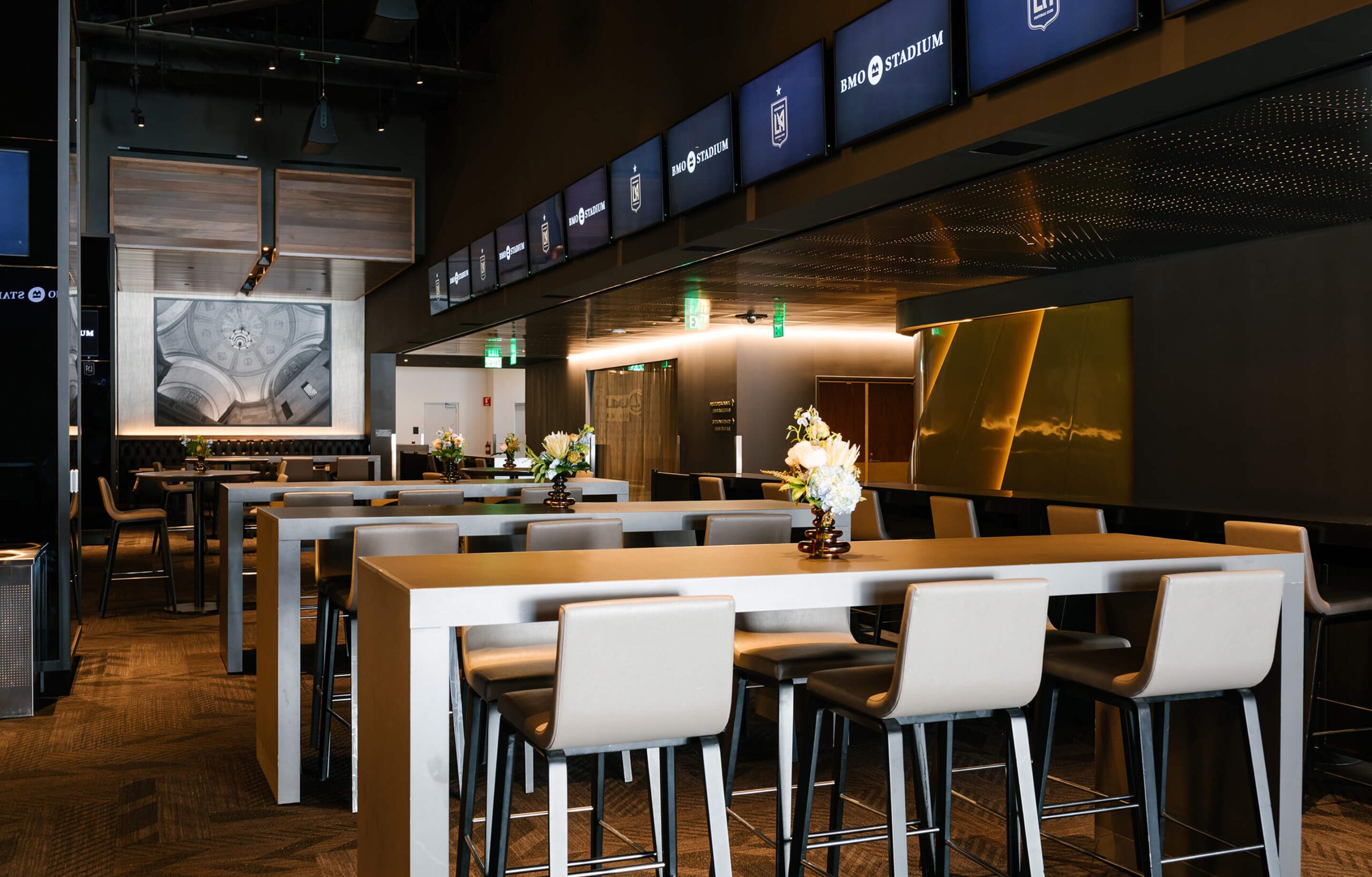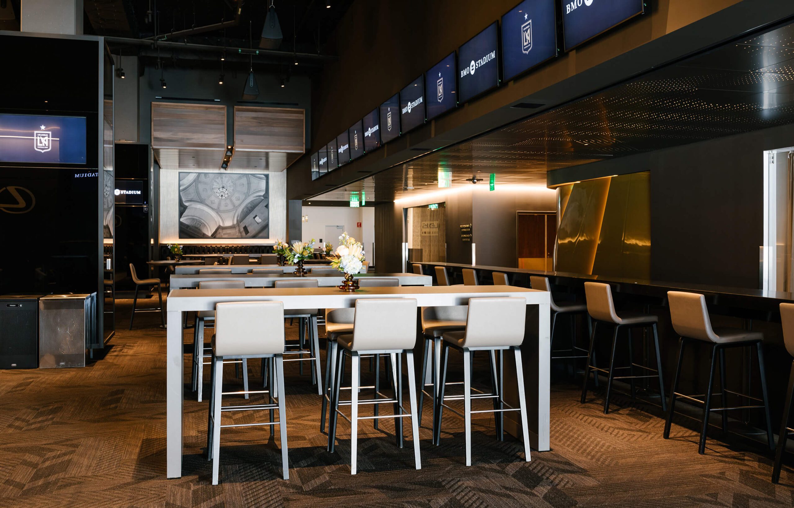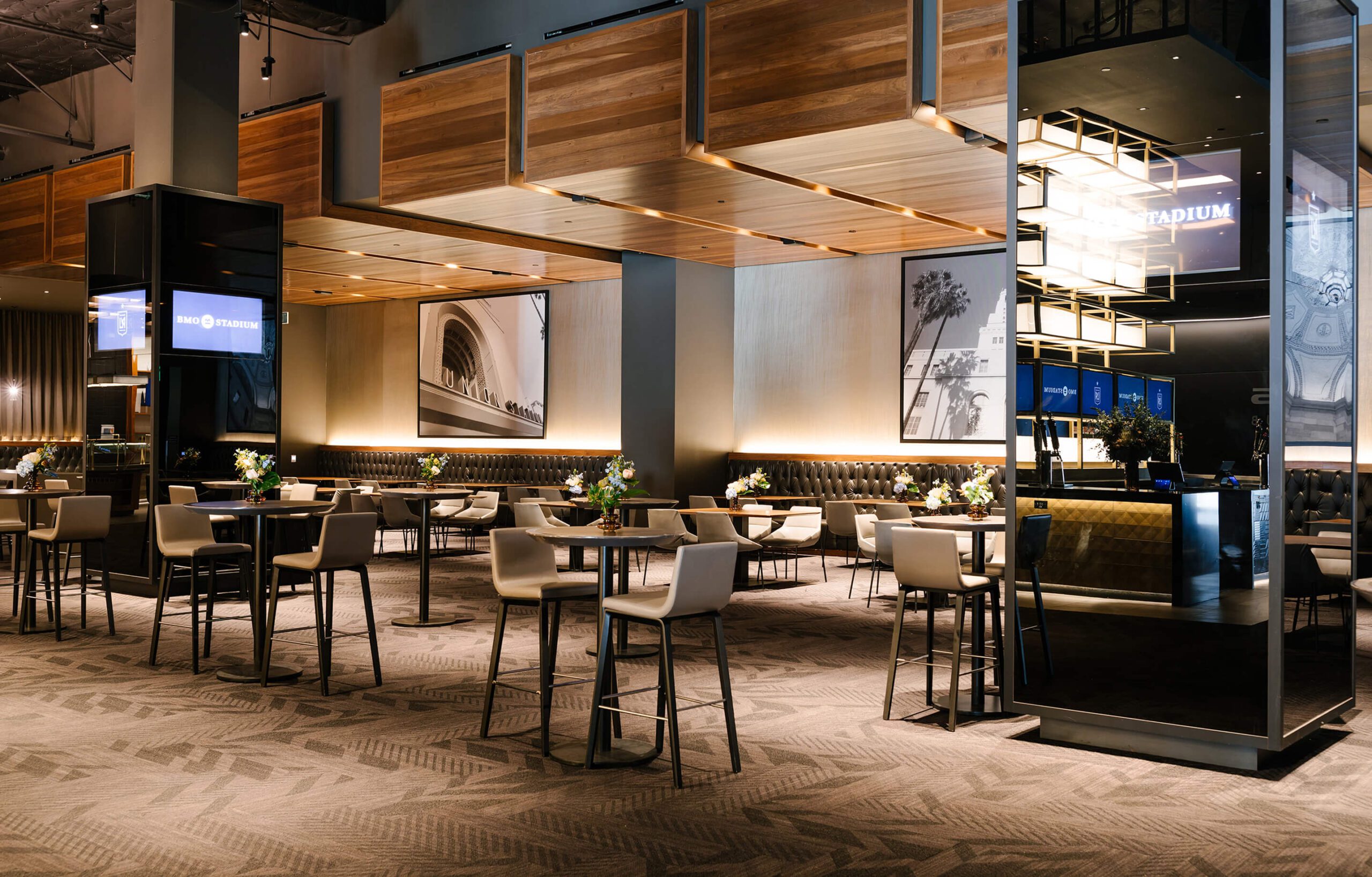 Intimate and private, the Field Club offers a sophisticated setting for any event. Designed with an Old Hollywood-inspired aesthetic, the club features a rich, dark ambiance that exudes timeless elegance.